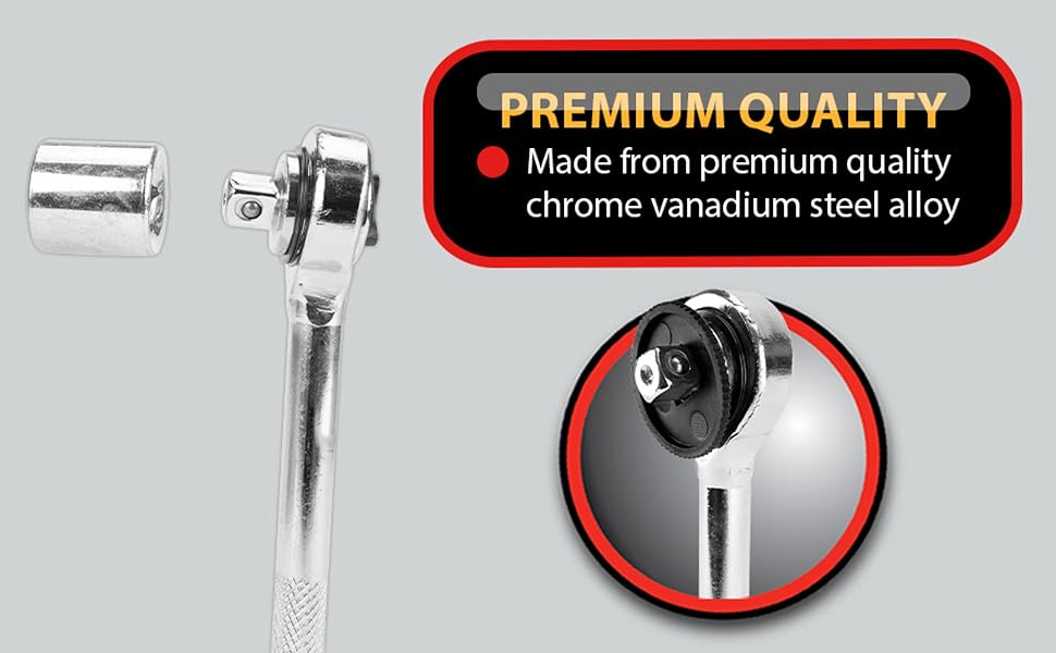 • LONG-LASTING DURABILITY: Made from chrome vanadium, this socket set is designed to last and resist corrosion, so you can rely on it for years to come.